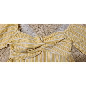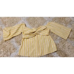Lulu's Off The Shoulder Knot Yellow Pin Stripe Top Small.