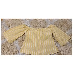 Lulu's Off The Shoulder Yellow Pin Stripe Top Small