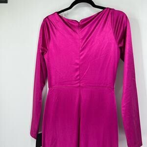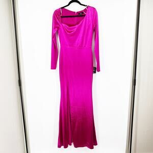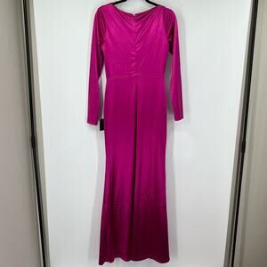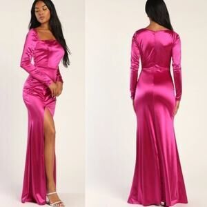 Lulus Off to the Ball Magenta Satin Long Sleeve Maxi Dress NWT