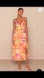 Crafted from woven chiffon, this airy midi dress features a vibrant, abstract floral print that sweeps across the skater silhouette. The gathered plunge bodice falls from adjustable spaghetti straps into a banded, smocked waist that sits atop a tiered ski