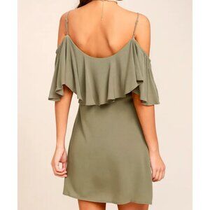 Lulus Olive Green Boho Chic Cold Shoulder Ruffle Women A line Mini Dress XS
