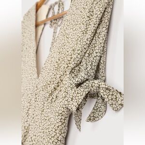 Lulus Olive Green Print Puff Sleeve Open Back Mini Dainity Dress Small