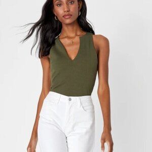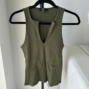 Lulus Olive Green Trendy Endeavor Ribbed Notched Tank Top Sz.M