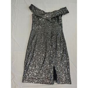 Lulus Once A Lifetime Silver Sequin Off The Shoulder Dress Size XS
