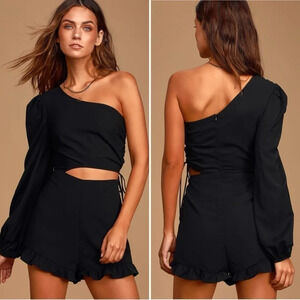 Lulu’s One Shoulder Cutout Romper in Black Size XL