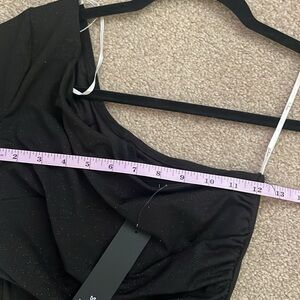 NWT. See photos for details and measurements. No major flaws. Sparkly fabric. Lining included. Side cutout.