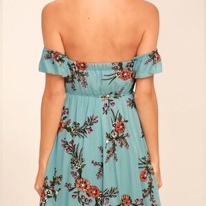 ⭐️Lulu’s, One Sweet Day, Light Blue Floral Print On/Off-the-Shoulder Dress,M