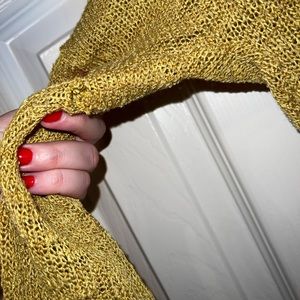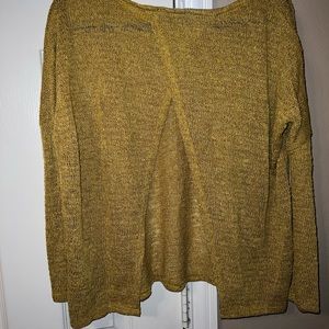 Super fun open back sweater! There is a tiny hole (as shown in picture) but that is easily fixed and not noticeable because it is under the arm! Only worn a few times but it is really cute with a black bralette