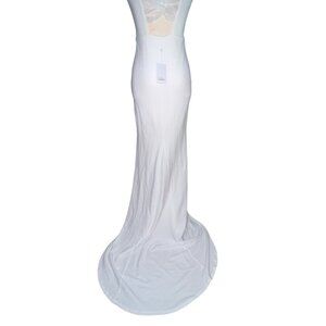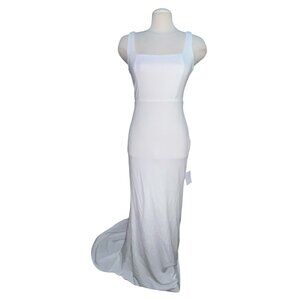 This is a Lulus New with Tags Open Bow Back Sleeveless Square Neck Maxi Wedding Dress with Train.