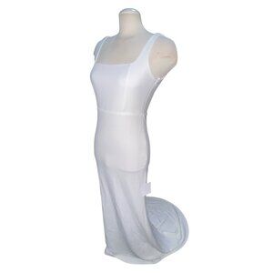 Lulus Open Bow Back Sleeveless Square Neck Maxi Wedding Dress with Train Sz Medi