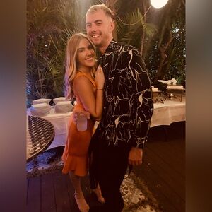 Worn once for a rehearsal dinner. Dress is in EUC. No visible flaws or signs of wear. Comfy material and flattering fit!