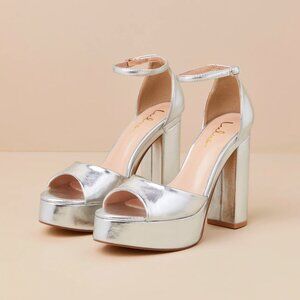 Lulus Orsola Silver Platform Ankle Strap Sandals - Size 8.5