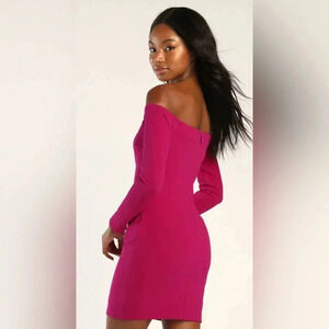 Lulus Over the Swoon Magenta Off the Shoulder Bodycon Dress