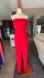 Measures 16 pit to pit and 52 inches top to hem and 14 inch waist. Lulus Exclusive! The chances for a magical evening are high in the Lulus Own the Night Red Strapless Maxi Dress! Medium-weight stretch knit shapes a strapless neckline with no-slip strips, and a crisscrossing bodice with sash that ties at back. Figure-skimming maxi skirt with front slit. Hidden back zipper and clasp.