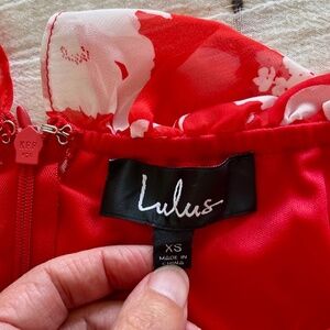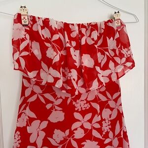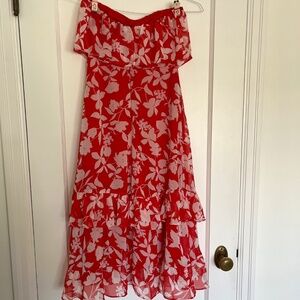 Lulus Paradise Is Waiting Red Floral Print Strapless Midi Dress | Size XS
