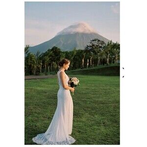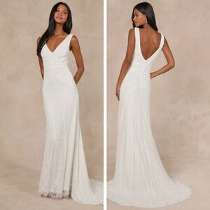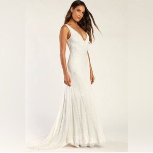 Lulus Passionate Romance White Beaded Sequin Mermaid Maxi Dress Size Large Bride