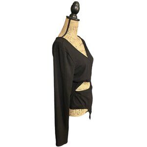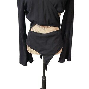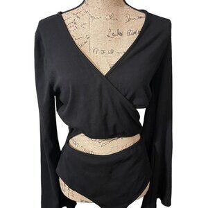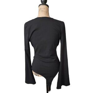 Lulus Perfect Appeal Ribbed Cutout bell sleeve bodysuit in a size XL. New. Solid black color. Laying flat pit to pit 20in. Length is 25in.