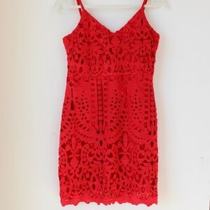 Lulus Perfect Love Red Lace Eyelet Mini Dress Size Small