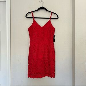 Lulu's Perfect Love Red Lace Eyelet Mini Dress NEW Size Medium