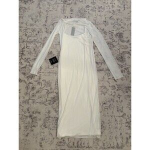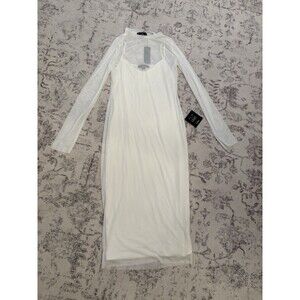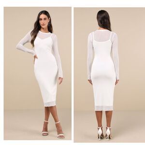 Lulus Perfect Plans Ivory Sheer Mesh Long Sleeve Bodycon Midi Dress Size Medium