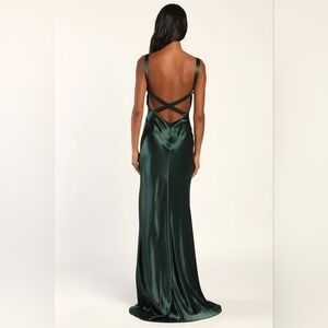 Lulus Perfectly Classy Emerald Green Satin Strappy Maxi Dress XXS Wedding Party. New without tags. See all pictures for details.