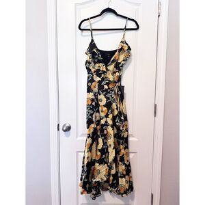 Lulus Perfectly Curated Black Floral Print Ruffled High-Low Wrap Dress NWT S