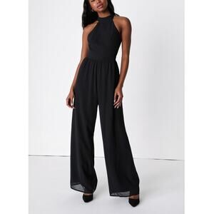 Lulus Perfectly Elegant Black Halter Backless Wide-Leg Jumpsuit size XS NEW