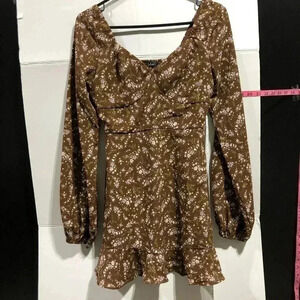 Lulus Persona Long Sleeve v-neck,Ruffle hemline,lightweight flowy Floral Print