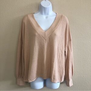 Lulu’s Personal Record Tan Knit Balloon Sleeve Sweater Top Size M