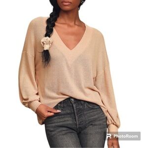 Lulus Personal Record Tan Knit Balloon Sleeve Sweater Top Size M