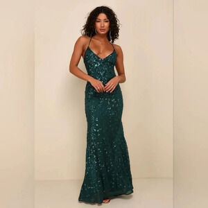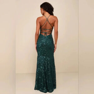 Lulus Photo Finish Forest Green Sequin Lace-Up Maxi Dress Wedding Party Prom. New without tags. See all pictures for details.