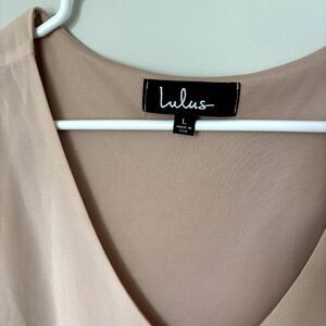 Crafted from high-quality, lightweight fabric, this dress drapes beautifully, enhancing your natural curves while ensuring all-day comfort. The flattering A-line shape and knee-length hemline make it versatile enough to dress up with heels or keep it casual with flats. Whether you're attending a wedding, a cocktail party, or a sophisticated brunch, this Lulus dress promises to turn heads and keep you feeling effortlessly stylish. Embrace a look that combines classic grace with modern edge—perfect for any fashion-forward wardrobe.
