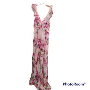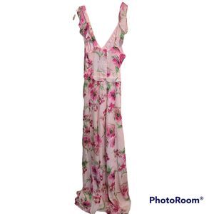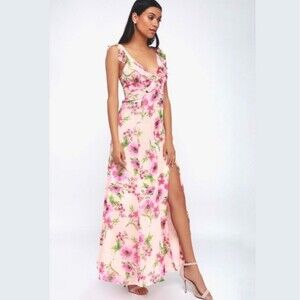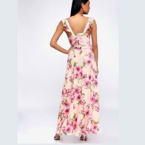 Lulu's Pink Feeling Fleur-ty Floral Chiffon Ruffle Maxi Dress