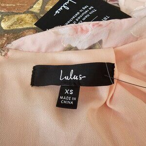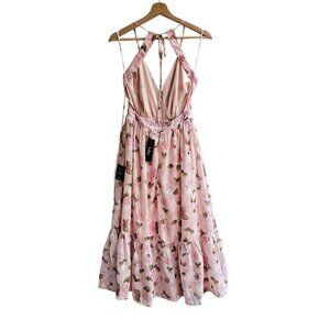 Lulus Pink Floral Ruffled Dress With V-neck and Halter Style Neckline, Size XS
