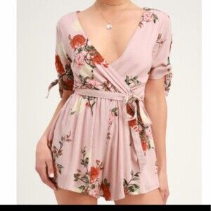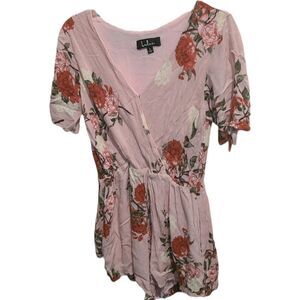 Lulu's Pink Floral Short Tie Sleeve Romper