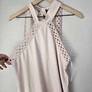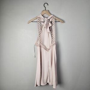 Lulu’s Pink Halter Mini Dress Crochet Large