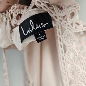 Description: Lulu’s Pink Halter Mini Dress Crochet Large
