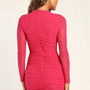 Make a statement at your next night out with this stunning pink bodycon dress from Lulu's. Featuring a sophisticated mock neck and elegant ruched detailing, this dress is designed to flatter your silhouette. Its long sleeves and vibrant color ensure you stand out in any crowd.