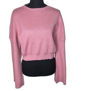Lulus Pink Ribbed Crop Sweater Wide Sleeve Small