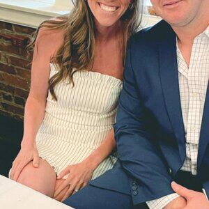 Lulu's Pinstripe mini dress. White with Navy Pinstripes - LIKE NEW - Small - Worn once for rehearsal dinner.