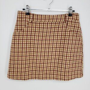 Lulus Plaid Mini Skirt M Sycamore A Line Pockets Tan Brown
