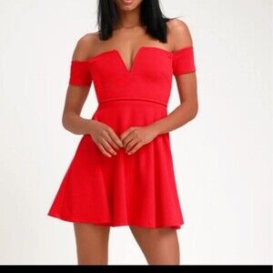 Lulu's Play the Party Red Off-the-Shoulder Skater Dress