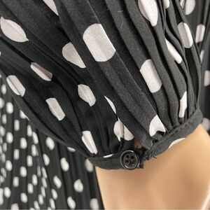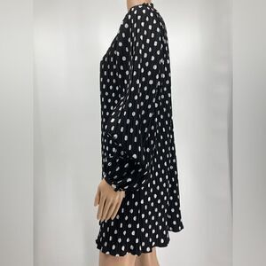Lulus Plead Black/White Polka Dot Long Sleeve Shift Dress Size S