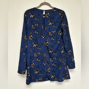 Lulu’s Pleasant Valley Navy Blue Floral Print Long Sleeve Shift Dress small