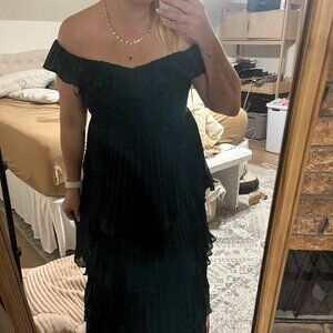 Lulu's Pleated Ruffle Off the Shoulder Formal Dress