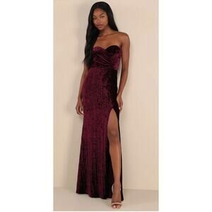 Lulus Plum Crush Velvet Pleated Strapless Classy Sensation Maxi Dress Size XS