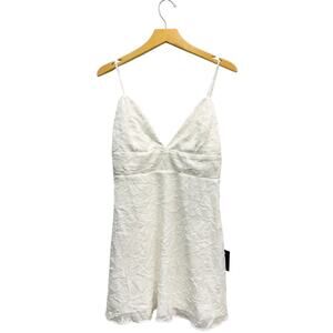 Lulus Plunge Neck Sleeveless Floral Jacquard Babydoll Dress White size Large NWT