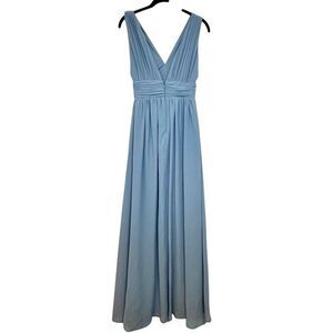 Lulus Plunge Neck Heavenly Hues Sleeveless Side Slit Maxi Dress Light Blue XS