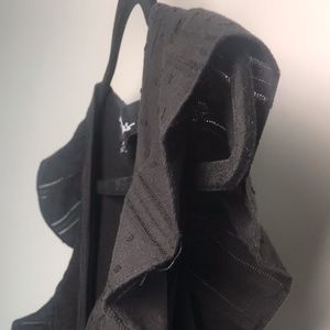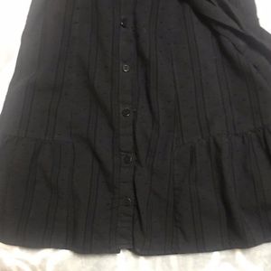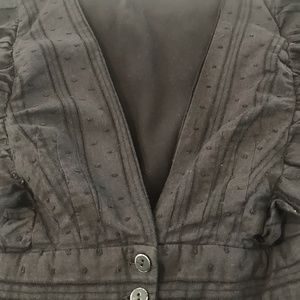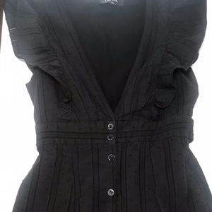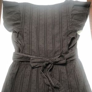 It has a deep v-neck with ruffle detail at the hem and shoulders..