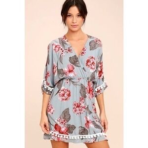 Lulus Pom Reader Blue Grey Floral Print Dress